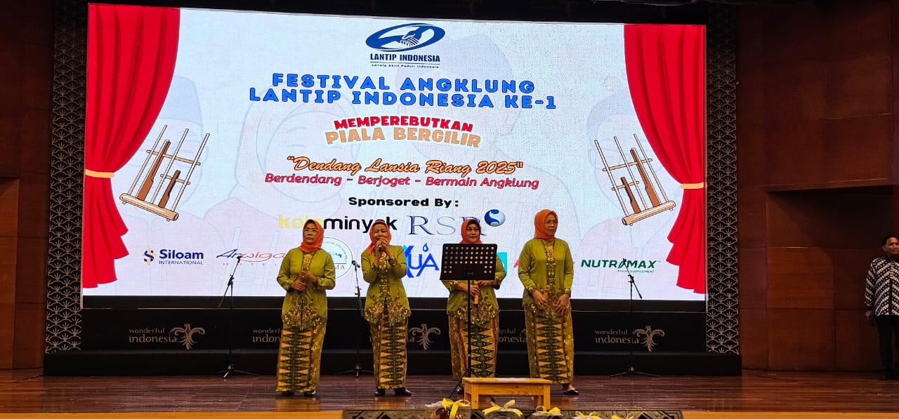 Jakarta, 15 November 2025 – Balairung Soesilo Soedarman, Gd. Sapta Pesona. Diikuti oleh 26 Tim Peserta dan kurang lebih 960 orang peserta, LANTIP Indonesia menyelengggarakan Festival Angklung yang pertama dengan tema Dendang Lansia Riang 2025 dan Motto “Angklung Duta Wisata Nusantara”. Tim Peserta berasal dari Jakarta, Tangerang, Bandung, Lampung dan Malang. Festival Angklung ini adalah Festival yang memaduserasikan antara bermain Angklung, Menari dan Menyanyi. Festival ini juga memperbutkan Piala Bergilir LANTIP Indonesia dan para pemenang akan mendapatkan Piala Tetap, uang tunai dan medali pemenang untuk 5 Juara. Festival ini disponsori oleh PT. Kota Minyak, RSR KJPP Ruky, Safrudin & Rekan, Hexua, PERINMA, Siloam Hospital, Arwiga Hotel, Wardah, Anlene, dan Nutrimax.