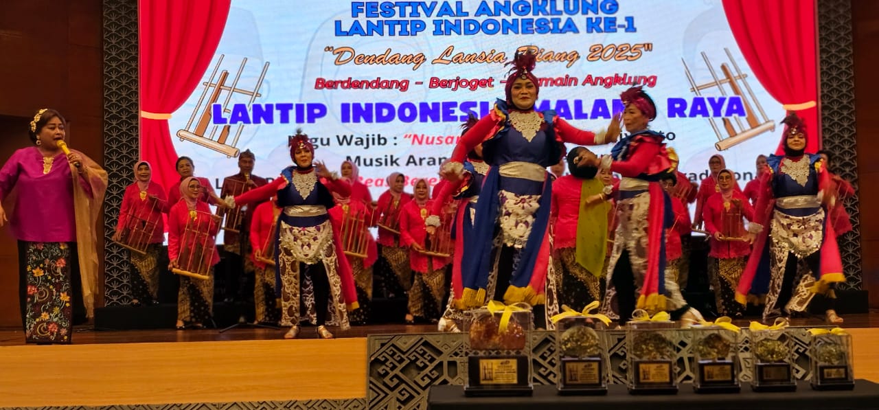Jakarta, 15 November 2025 – Balairung Soesilo Soedarman, Gd. Sapta Pesona. Diikuti oleh 26 Tim Peserta dan kurang lebih 960 orang peserta, LANTIP Indonesia menyelengggarakan Festival Angklung yang pertama dengan tema Dendang Lansia Riang 2025 dan Motto “Angklung Duta Wisata Nusantara”. Tim Peserta berasal dari Jakarta, Tangerang, Bandung, Lampung dan Malang. Festival Angklung ini adalah Festival yang memaduserasikan antara bermain Angklung, Menari dan Menyanyi. Festival ini juga memperbutkan Piala Bergilir LANTIP Indonesia dan para pemenang akan mendapatkan Piala Tetap, uang tunai dan medali pemenang untuk 5 Juara. Festival ini disponsori oleh PT. Kota Minyak, RSR KJPP Ruky, Safrudin & Rekan, Hexua, PERINMA, Siloam Hospital, Arwiga Hotel, Wardah, Anlene, dan Nutrimax.