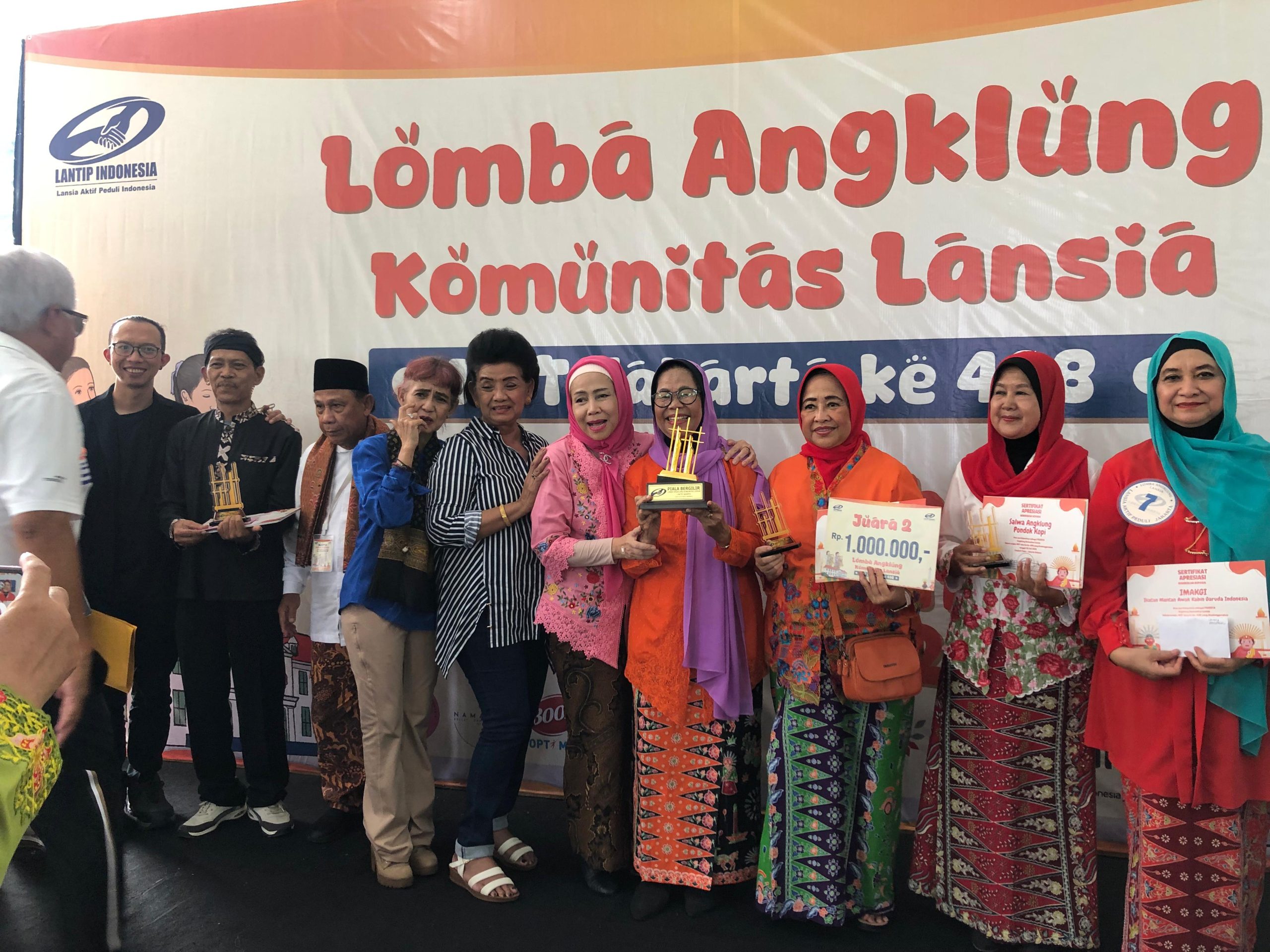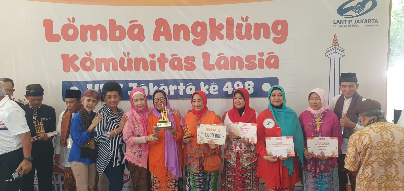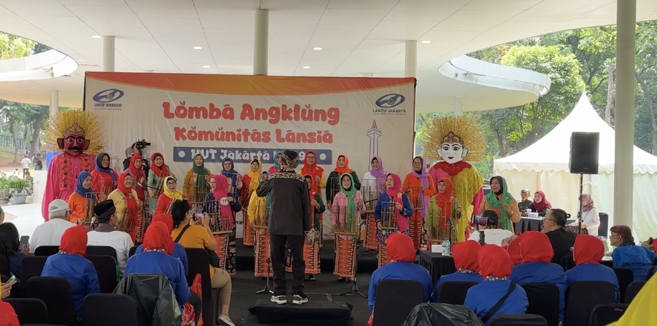 Jakarta, 20 Juli 2025 – Bertempat di Tebet Ecopark LANTIP Indonesia Daerah Provinsi DKI Jakarta menggelar Lomba Angklung Komunitas Lansia dalam Memperingati Ulang Tahun DKI Jakarta yang ke 498 tahun. Lomba Angklung ini diikuti oleh 12 regu yang tentunya berasal dari Daerah Jakarta, diantaranya adalah Komang Ikatus, Salwa, Susvara Harsa, Granny 46, Kerta Ceria PWRI, Selancar Poge, Imakgi, Sandya Angklung PWJ, Lansia Bahagia, Sixerhood, Bella Swara, Shankara Bougenville. Masing – masing regu harus membawakan 1 lagu wajib yaitu lagu Jali – Jali dan 1 lagu pilihan.